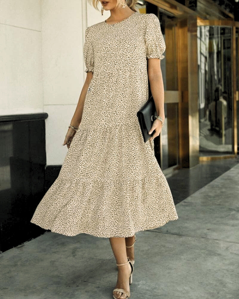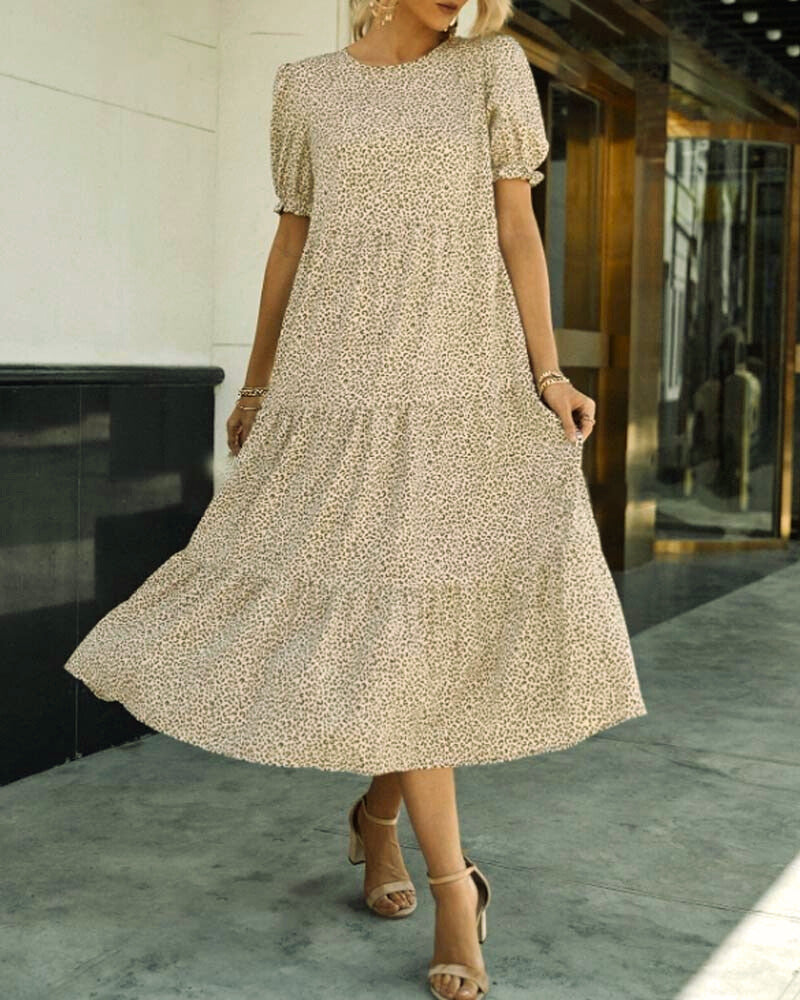 Elegant Klänning Med Rund Hals Och Puffärmar För Kvinnor | Ideal för sommaren